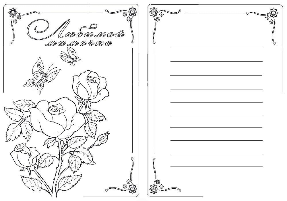 Открытка для мамы раскраска