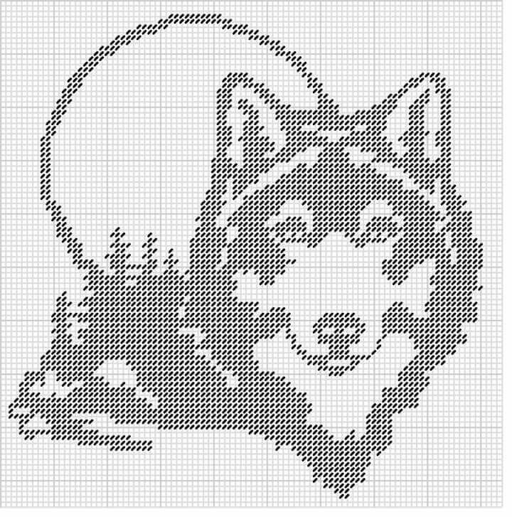 ![Монохромная вышивка хаски]()