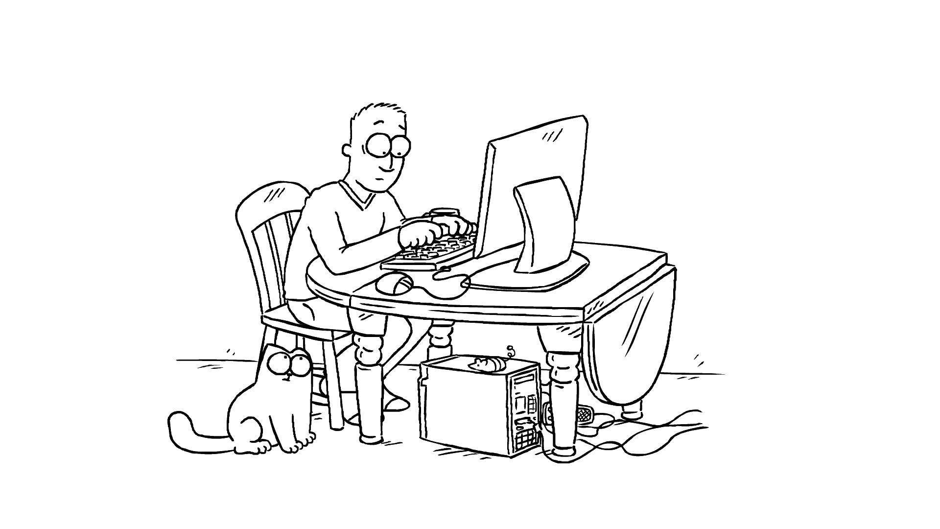 ![Нарисованный человек за компьютером]()
