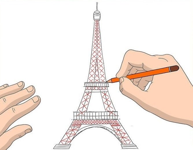 ![Этап рисования Эйфелевой башни]()