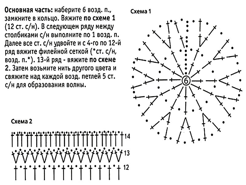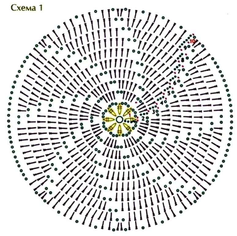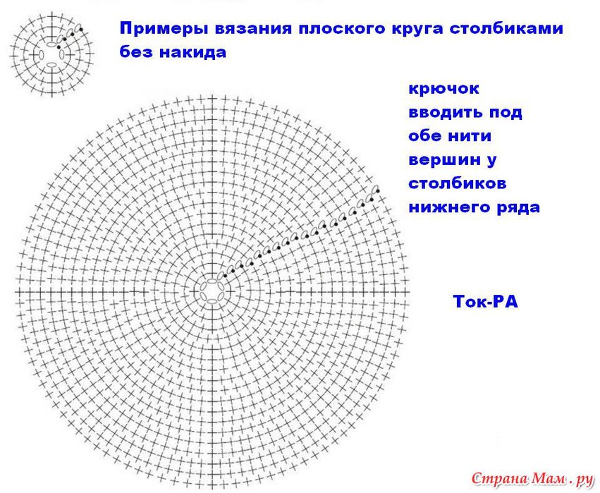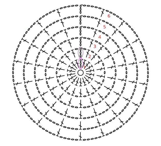 ![Схема вязания круга крючком]()
