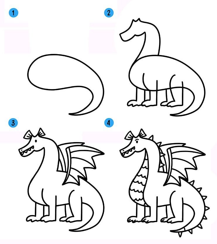 Схема рисования дракона для детей