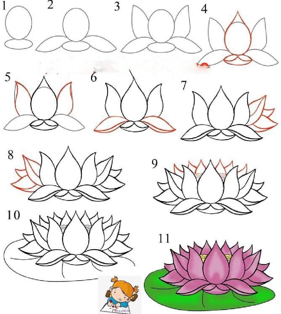 Цветок Лотос рисунок легкий