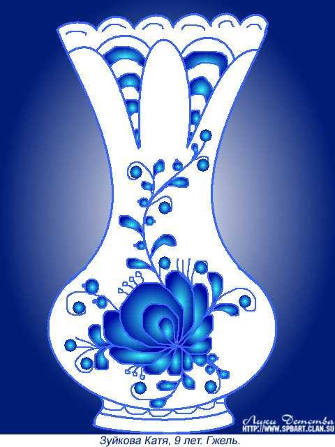 ![Гжель роспись для детей ваза]()