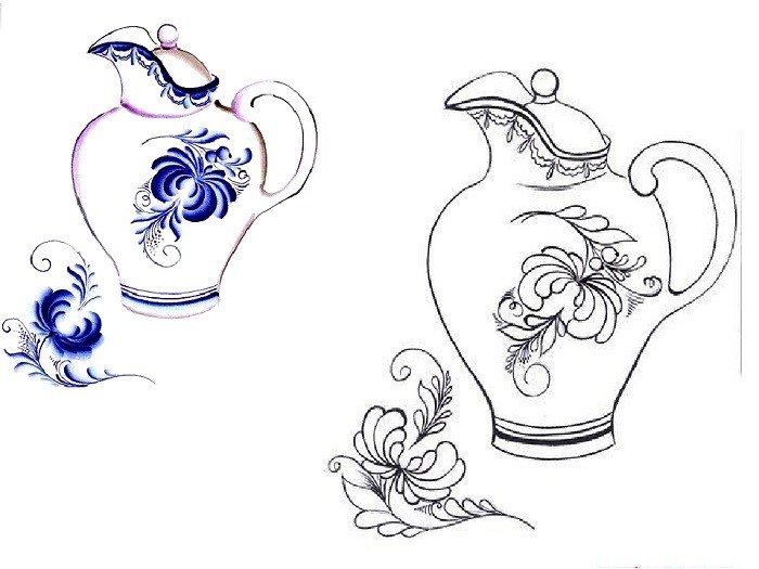 Гжельская посуда для срисовки