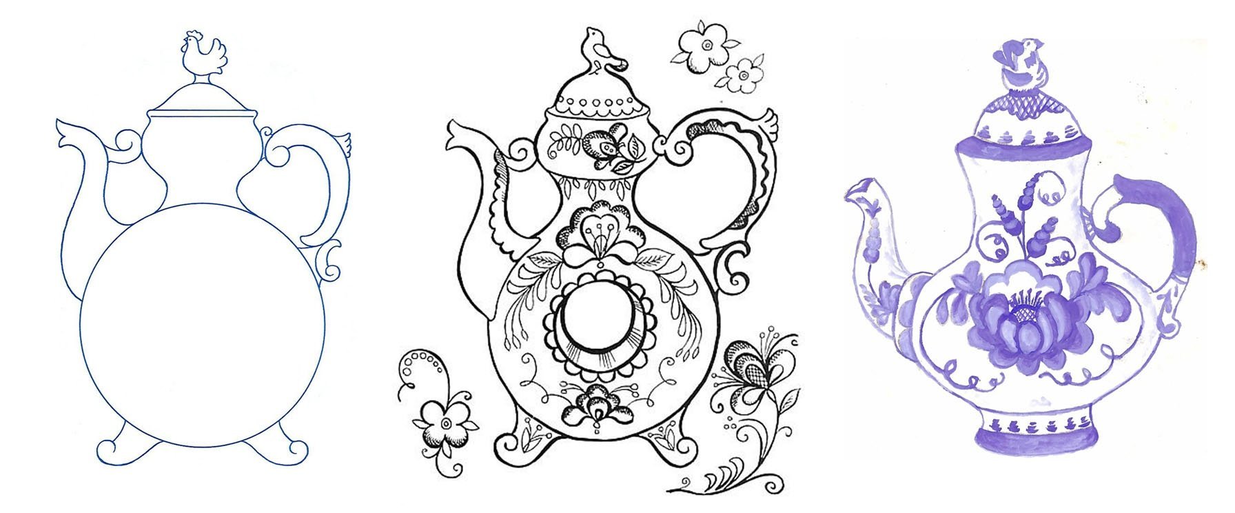![Чайник с гжельской росписью рисунки детей]()
