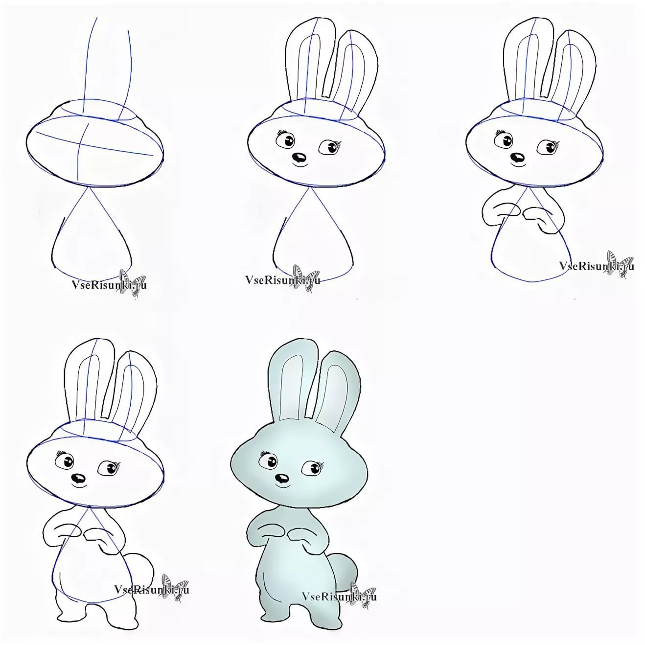 ![Поэтапное рисование кролика для детей]()