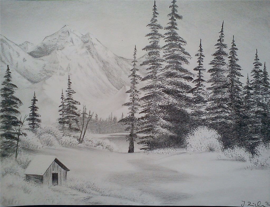 ![Зимний пейзаж карандашом легко]()