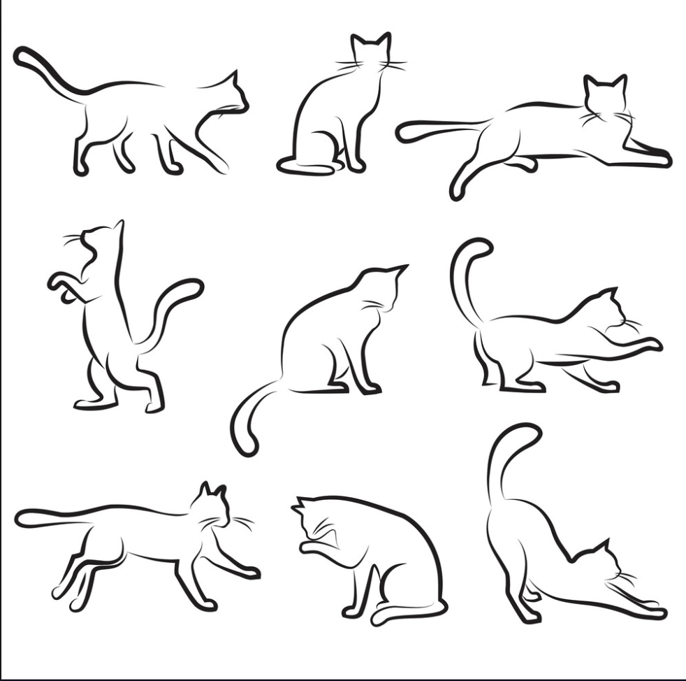 Силуэты кошек в разных позах