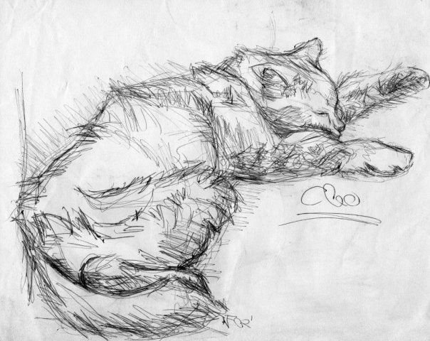 ![Набросок спящего кота]()