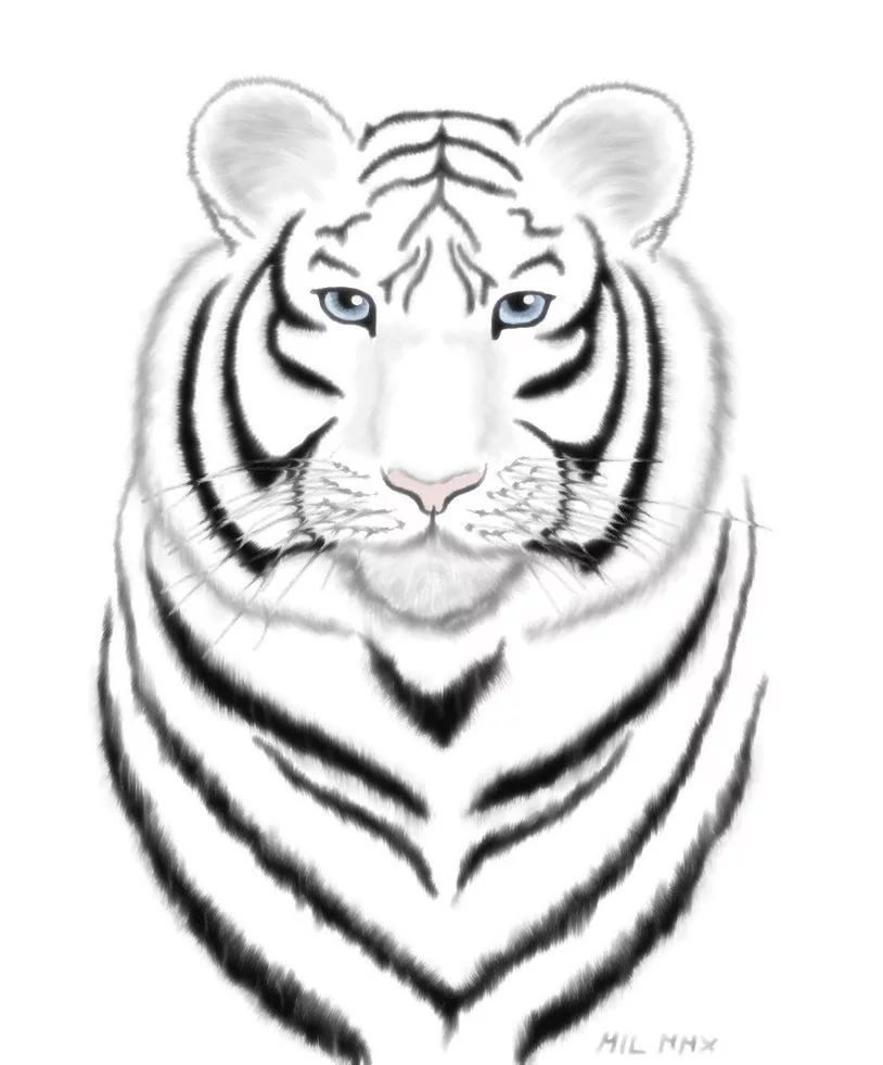 Тигр белый рисунок простой - это краткое описание уникального и впечатляющего изображения белого тигра. Рисунок представляет собой простую, но эффектную композицию, где каждая черта и деталь внимательно проработаны. Белый цвет тигра символизирует его редкость и экзотичность, подчеркивая его величественность и грациозность. Линии и формы рисунка являются простыми и лаконичными, придающими ему элегантный и стильный вид. Такой рисунок тигра способен привлечь внимание и вызвать восторг у любителей животных и искусства.