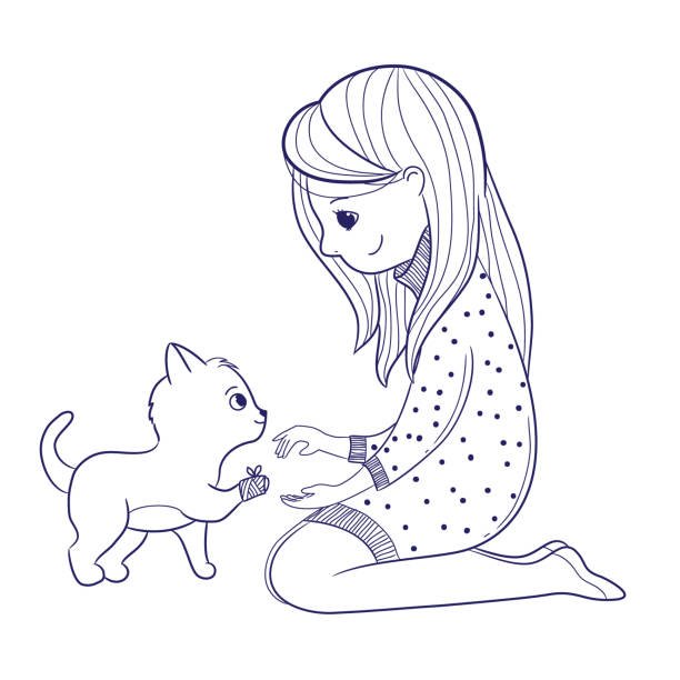 Кошка девочка рисунок для срисовки