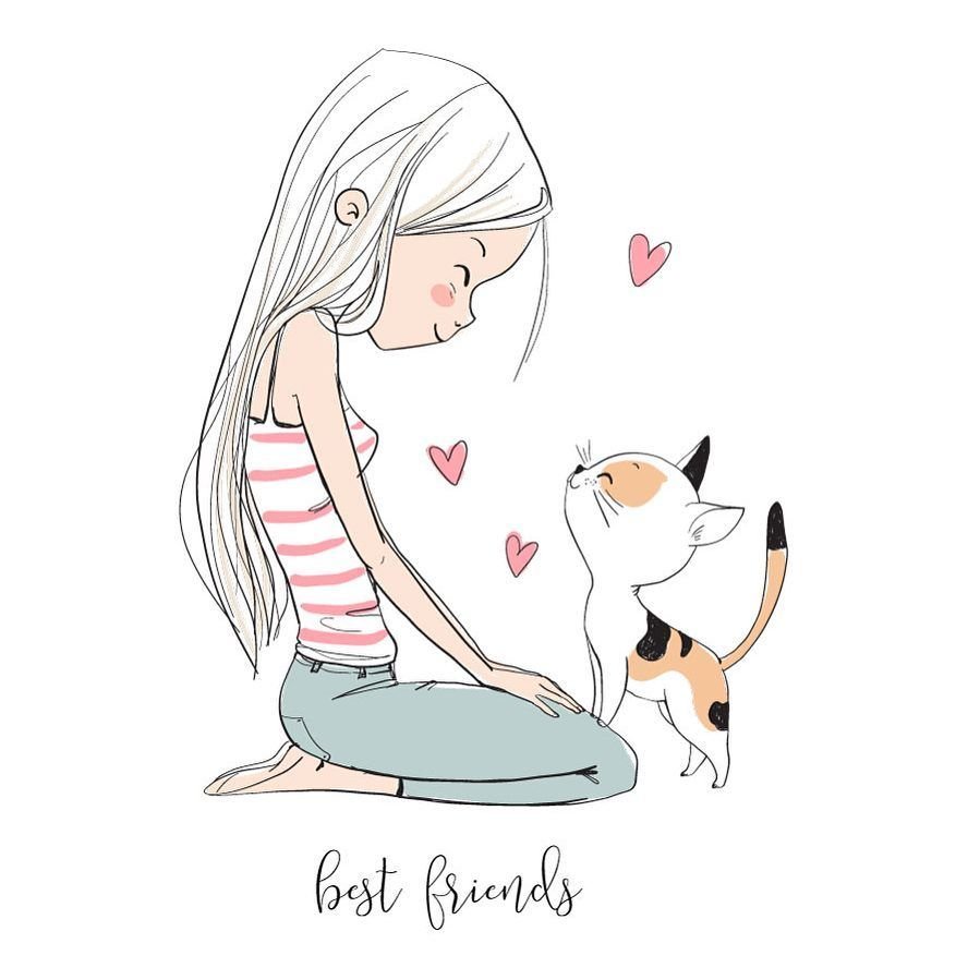 ![Девушка с котом иллюстрация]()