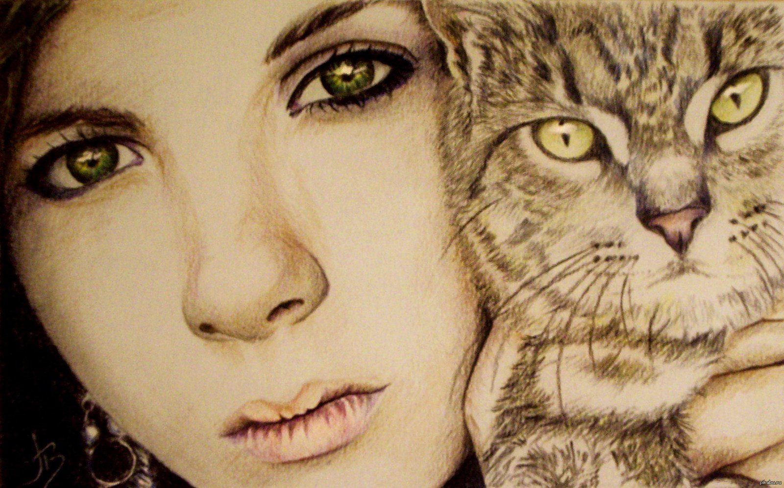 Девушка с кошкой рисунок