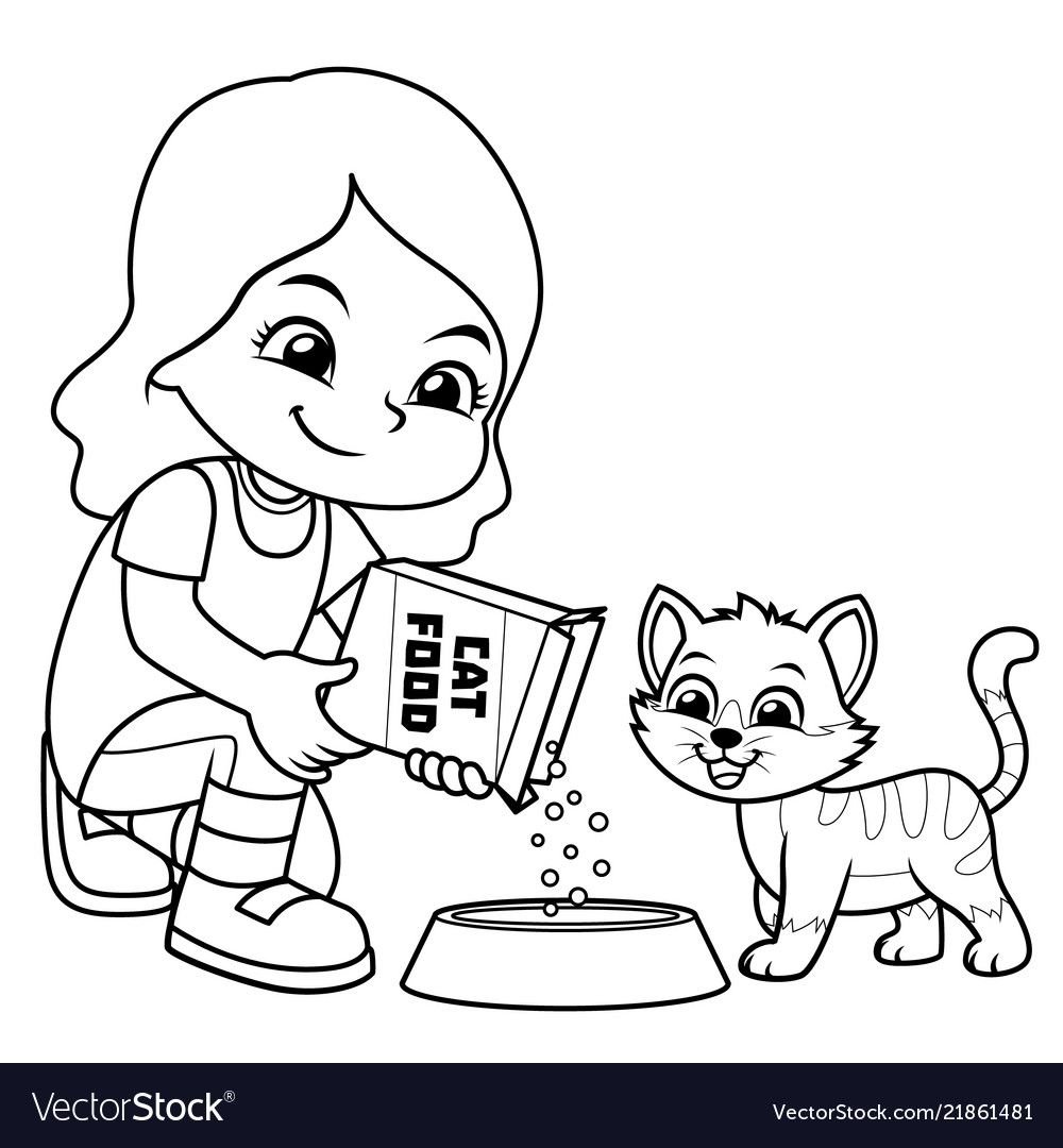 ![Девочка кошка раскраска для детей]()