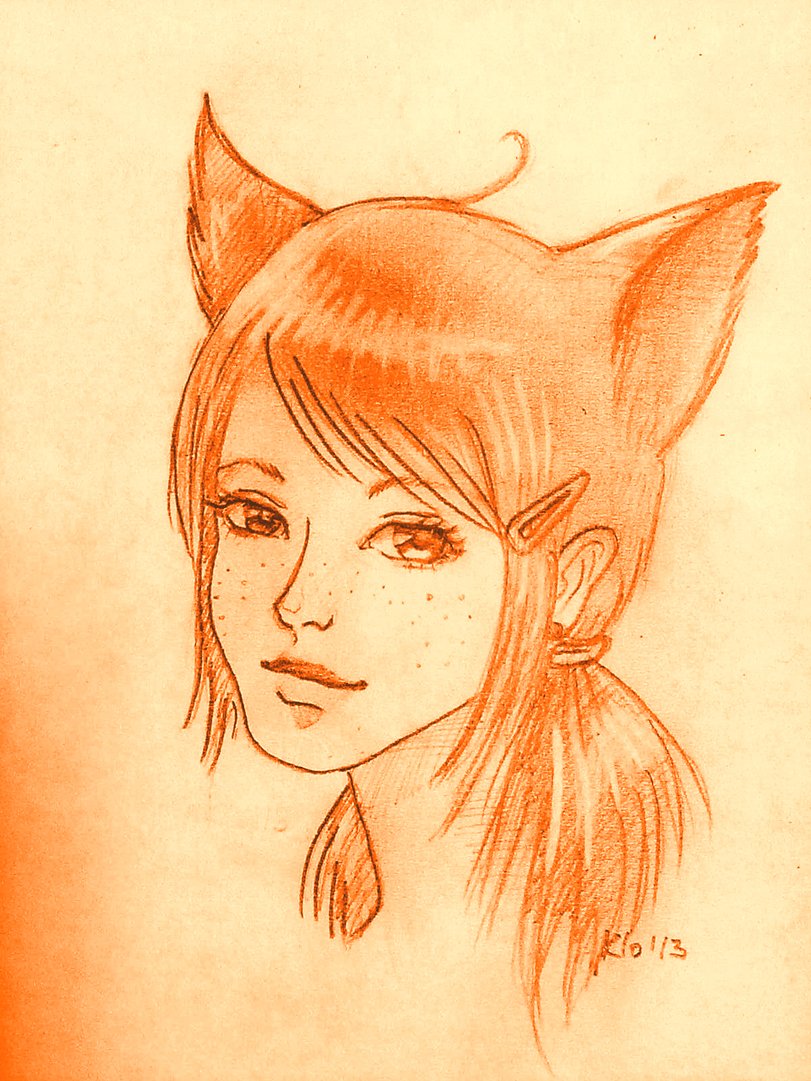 Девушка с лисьими ушками эскиз