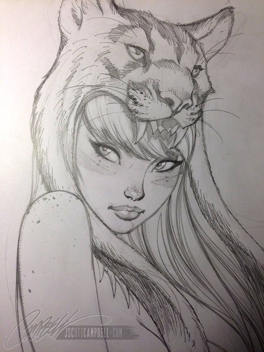 Девушка кошка рисунок карандашом