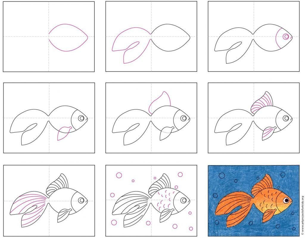 Наш простой рисунок золотой рыбки идеально подходит для детей, которые любят творчество и животных. Этот рисунок легко нарисовать и не требует особых навыков в изобразительном искусстве. Золотая рыбка изображена яркими цветами, благодаря чему она привлекает внимание детей и вызывает у них восторг. Каждый ребенок сможет самостоятельно создать этот рисунок и почувствовать себя художником. Разукрашивание рыбки позволяет детям развить свою моторику и творческую мысль.