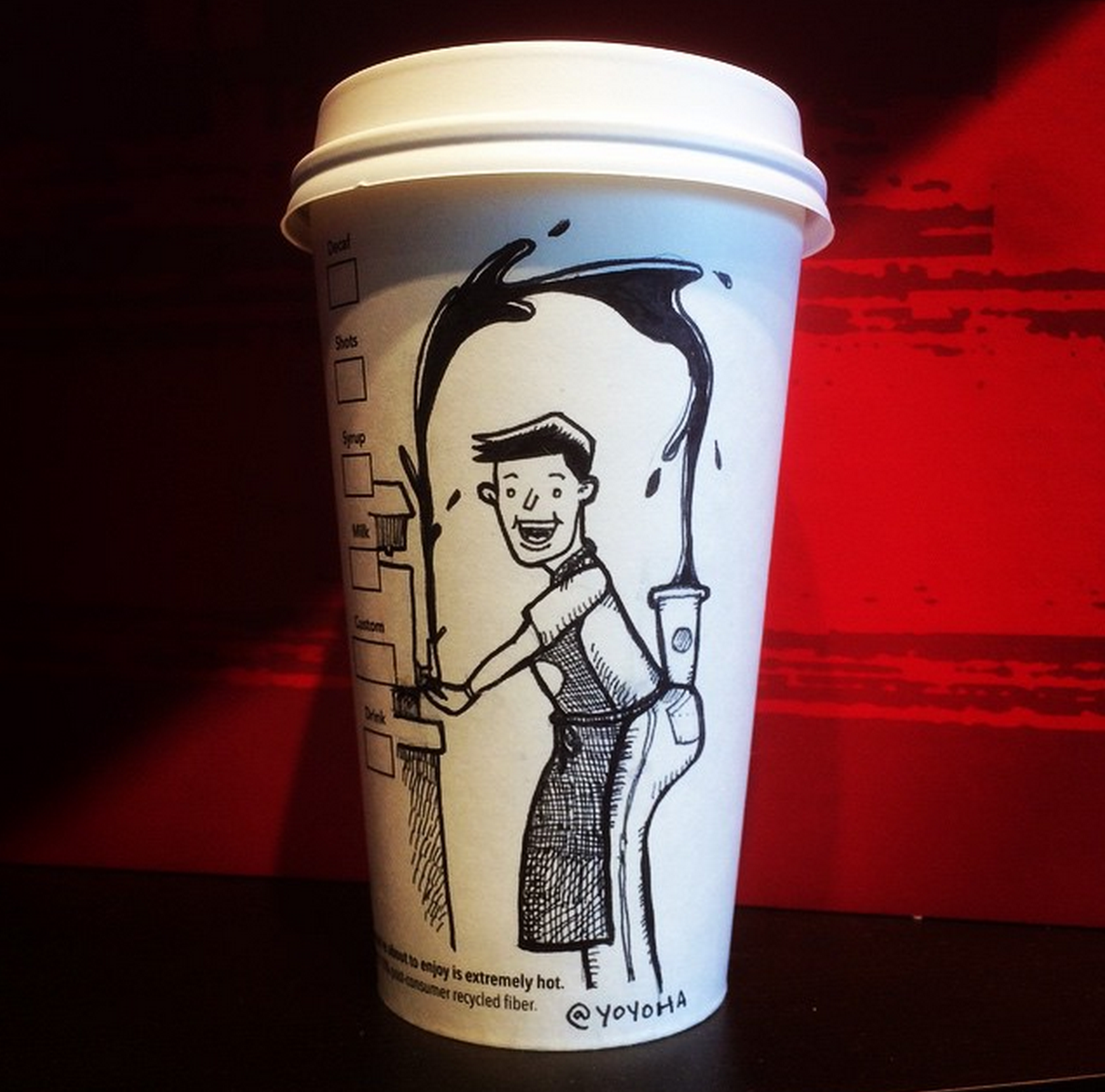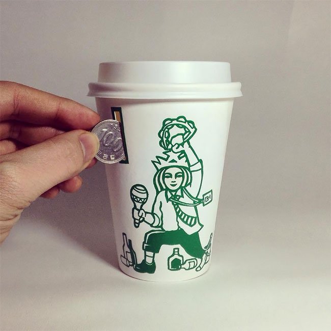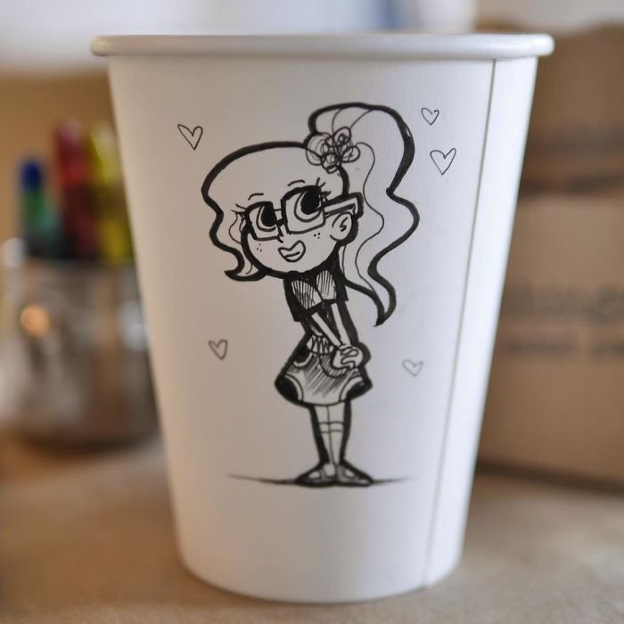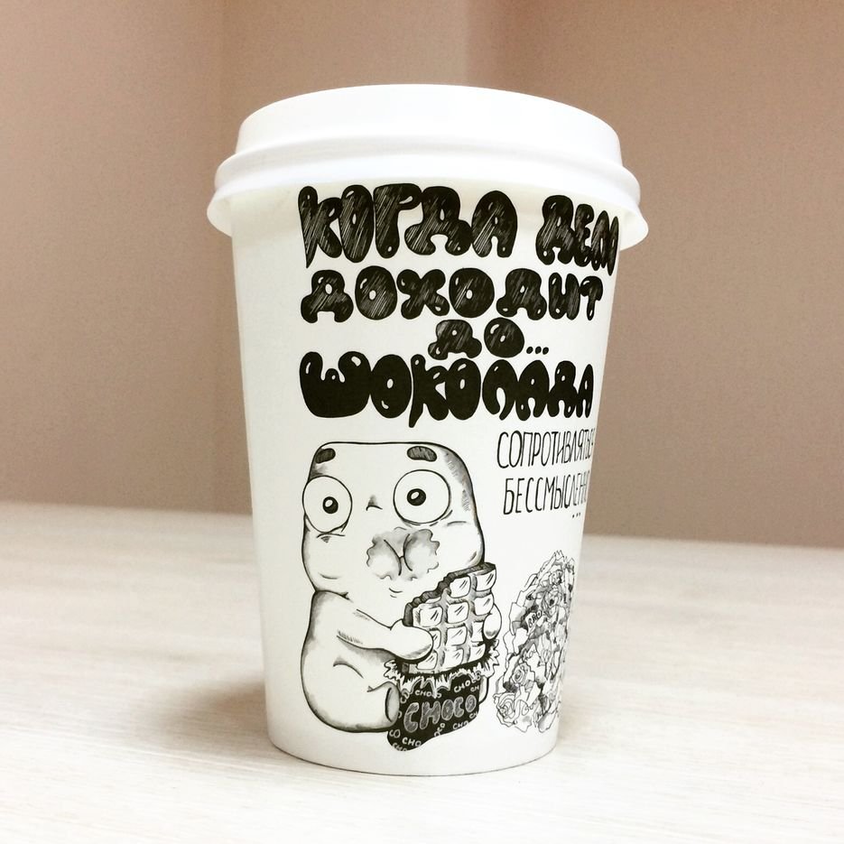![Оригинальный рисунок на бумажном стакане]()