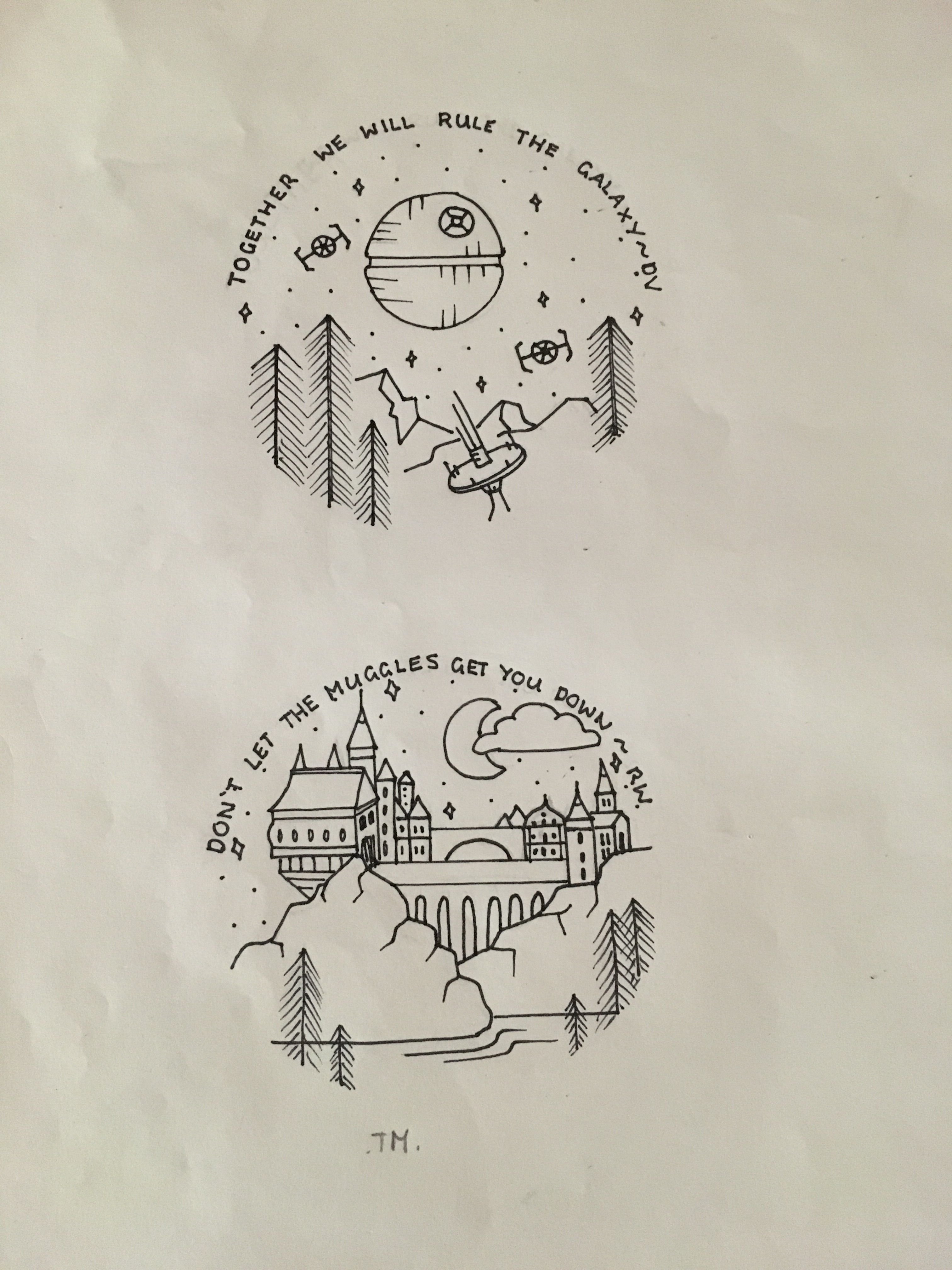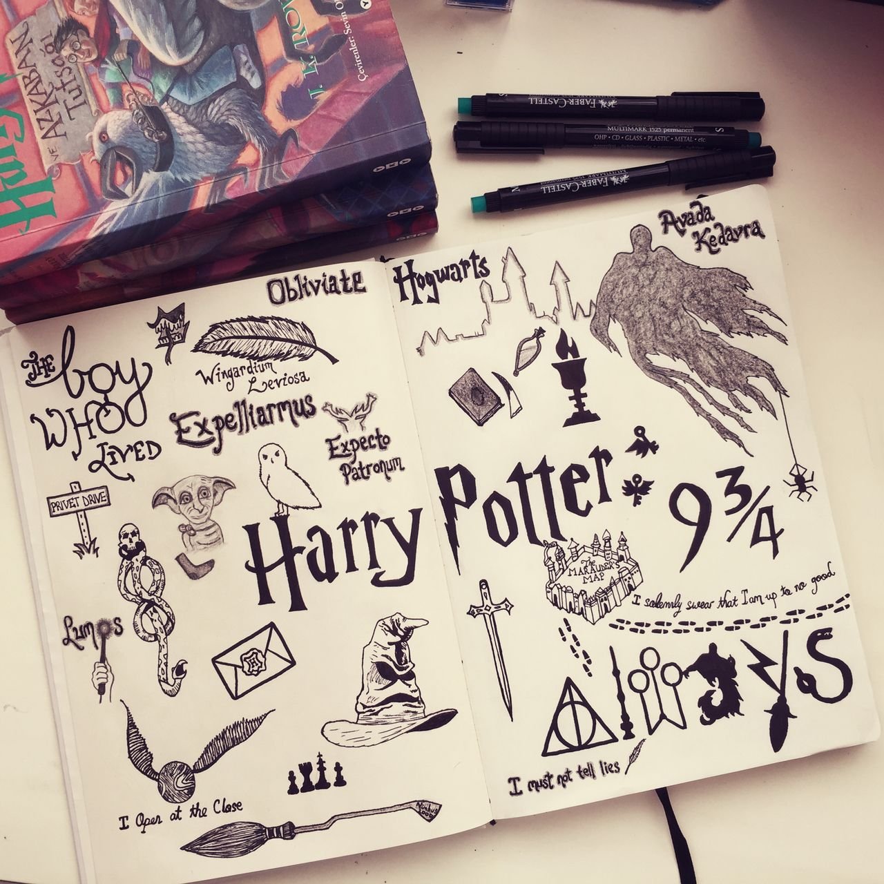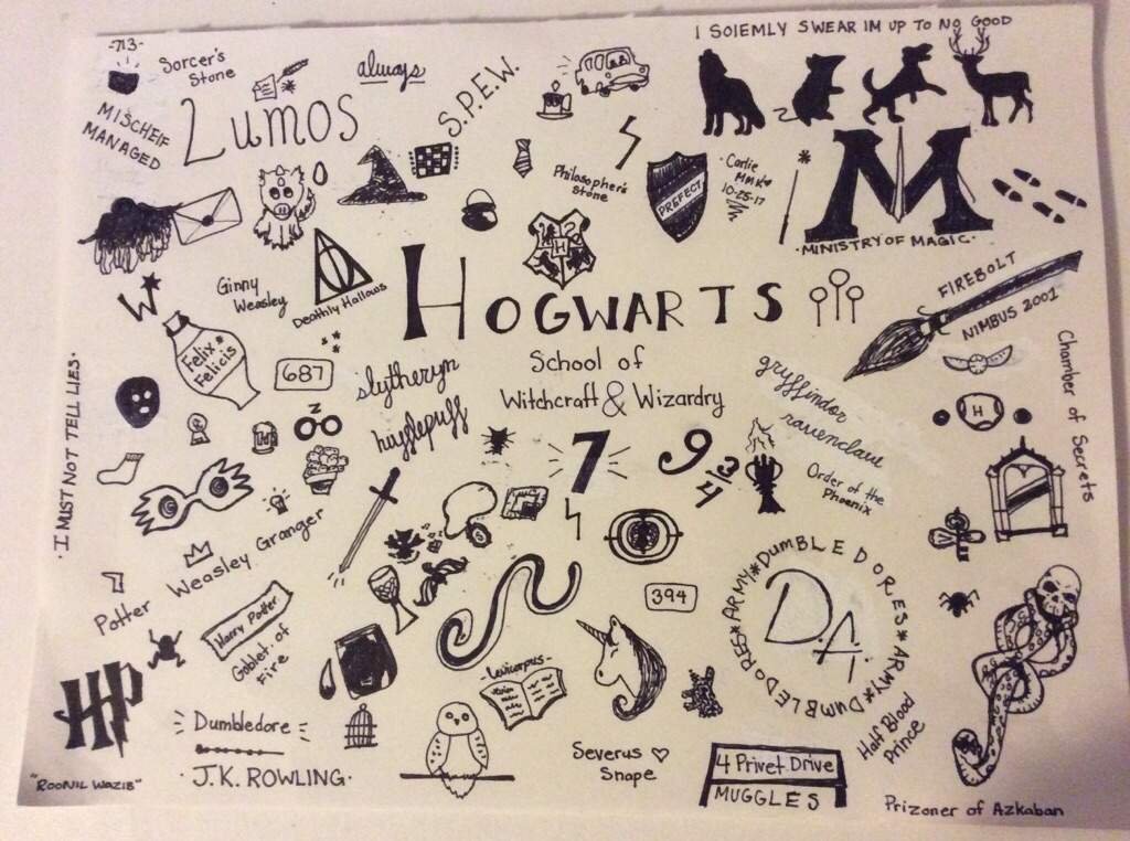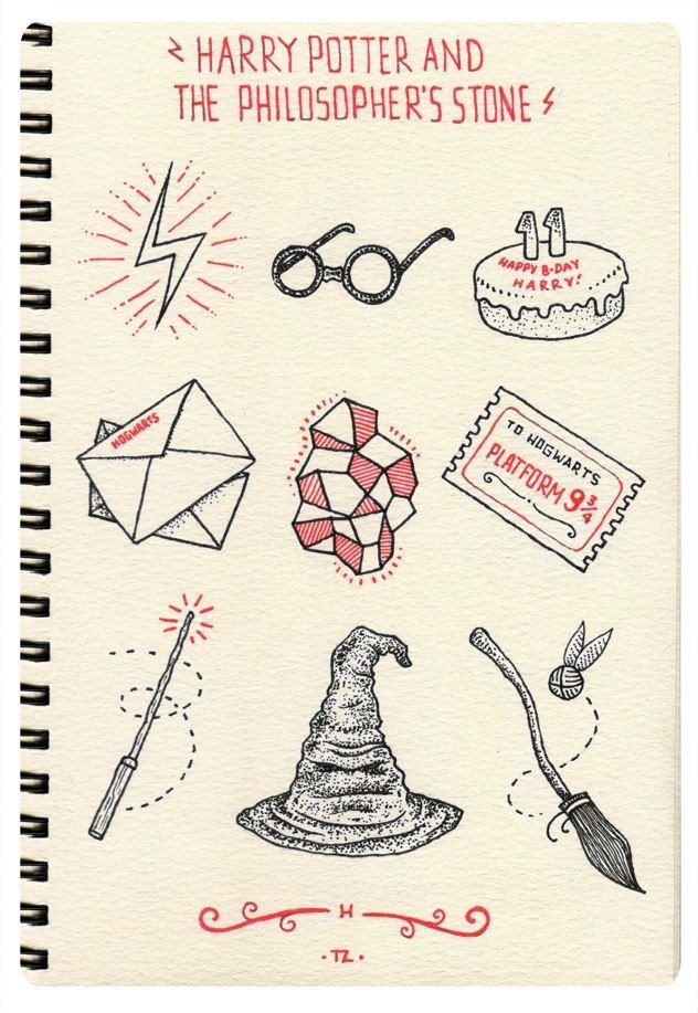 Рисунки в стиле Гарри Поттера для скетчбука