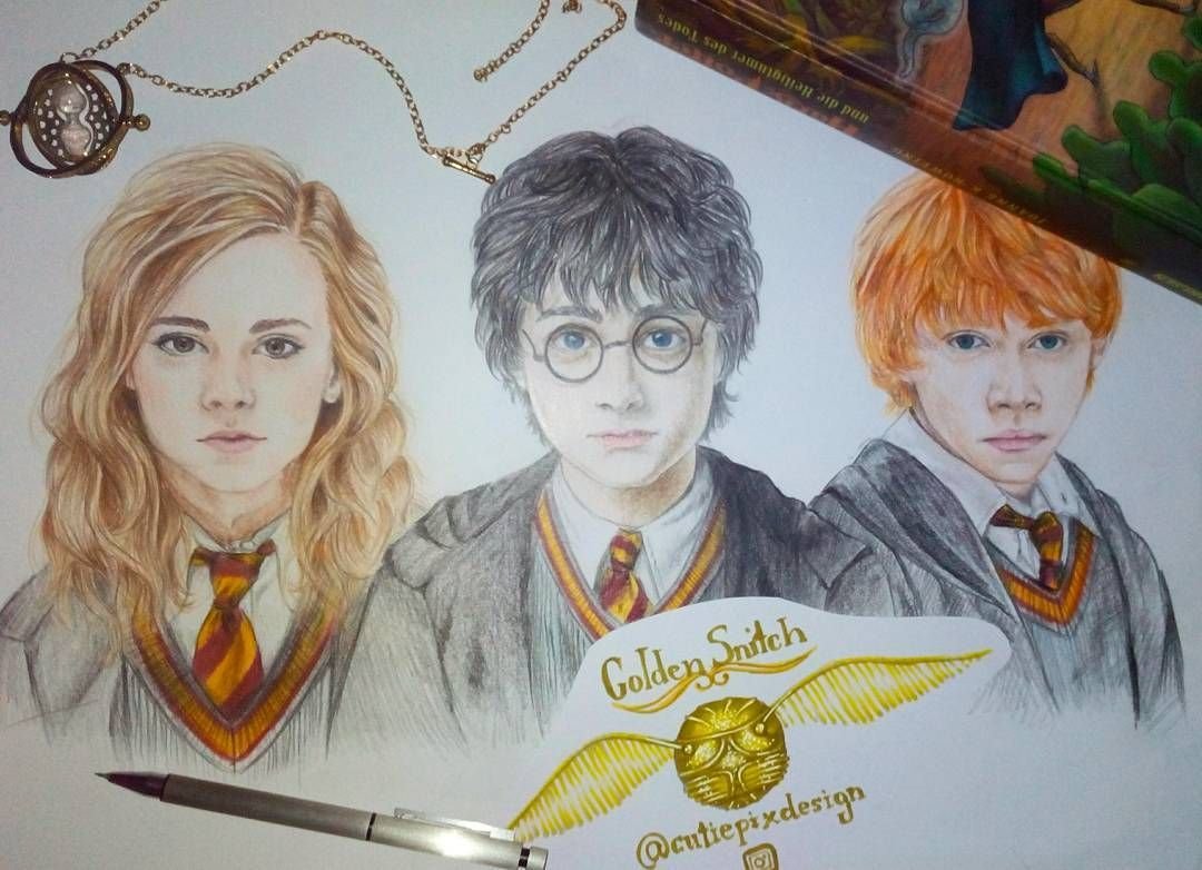 Срисовки Гарри Поттера Рона и Гермионы