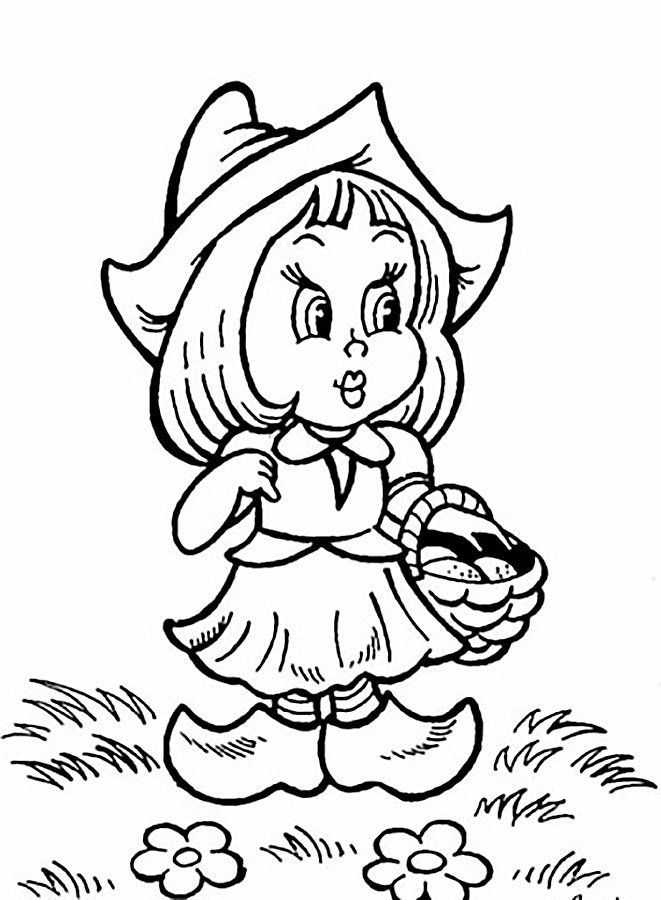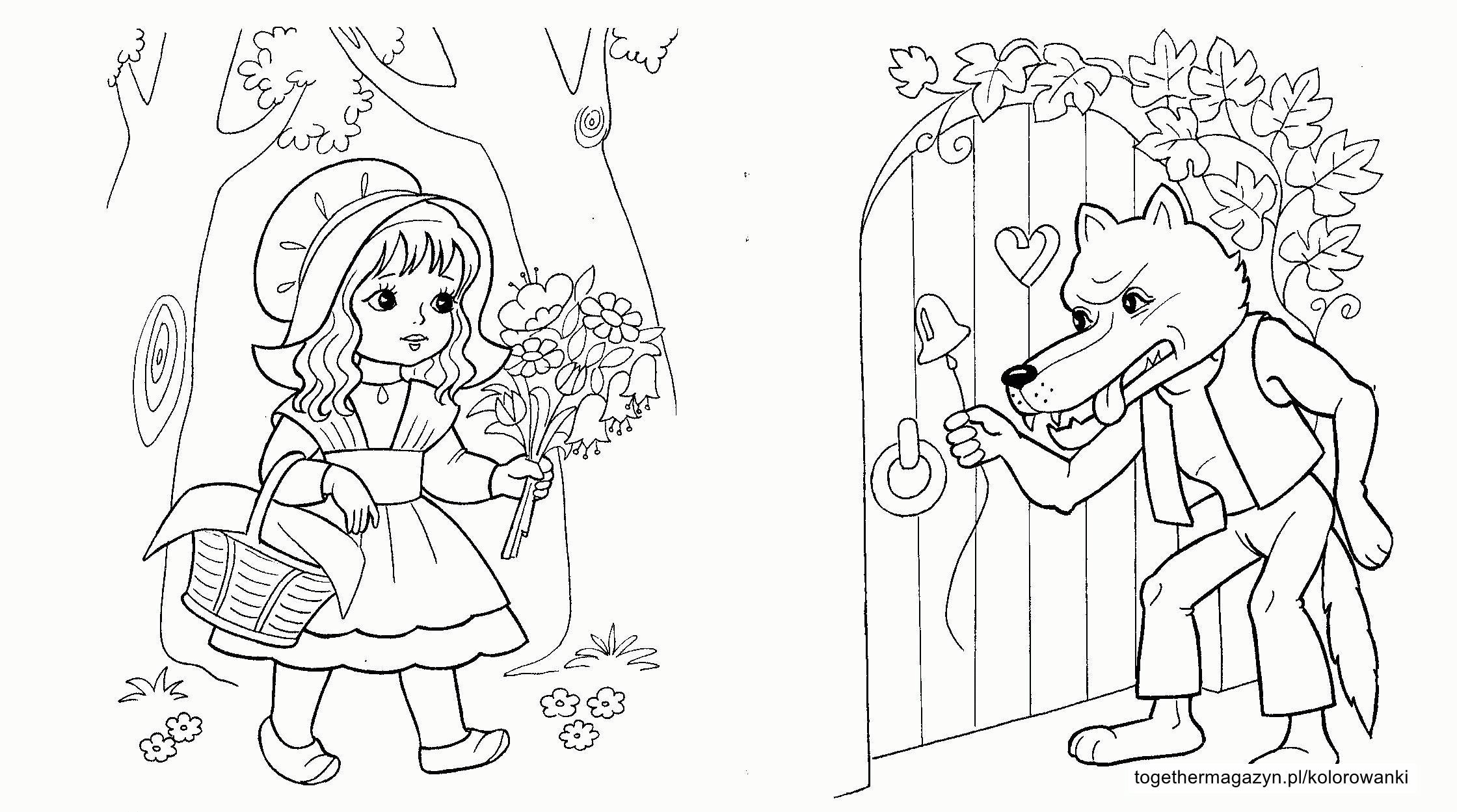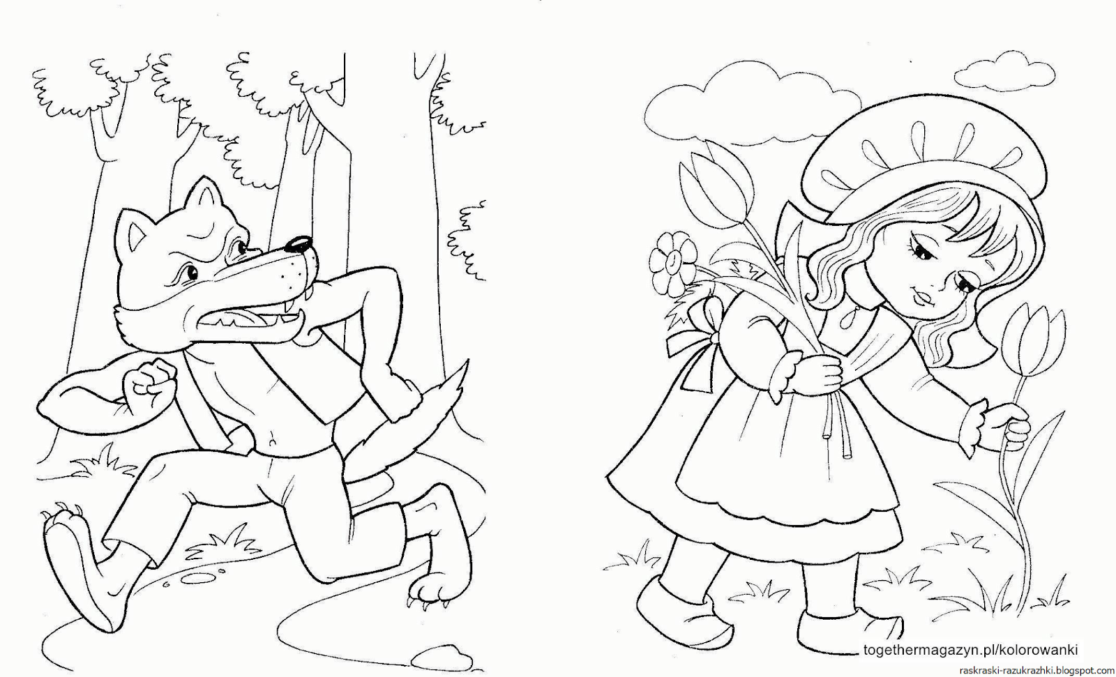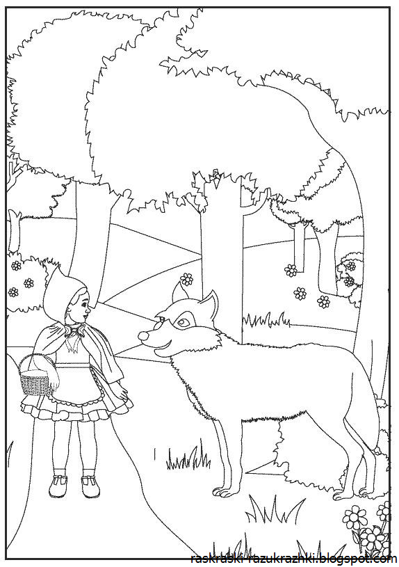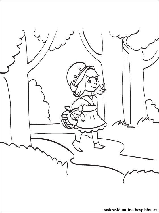 ![Картинки к сказке красная шапочка для детей раскраска]()