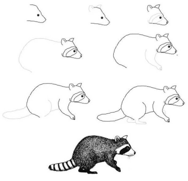 Поэтапное рисование енота