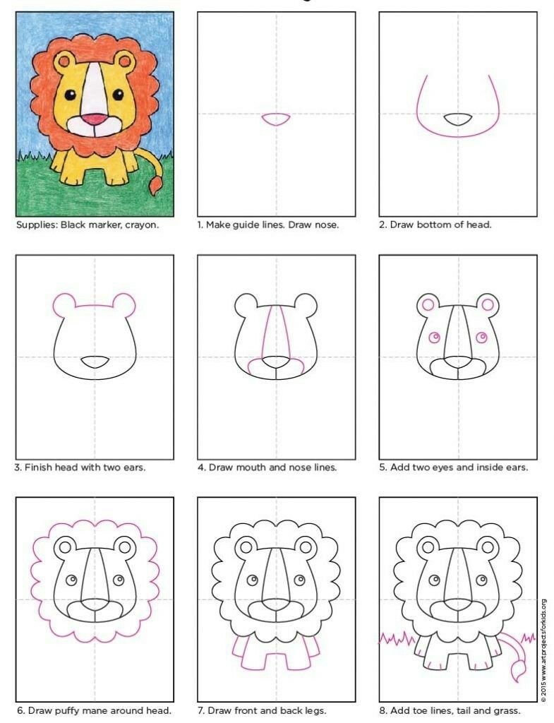 В данном описании рассмотрим простой и понятный пошаговый процесс создания рисунка льва. Для начала, возьмите лист бумаги и карандаш. Начните с наброска основных контуров головы – нарисуйте круг для морды и прикрепите к нему трикутник для ушей. Затем добавьте глаза, нос и рот. Переходите к телу, на котором можно нарисовать две округлые части для передних лап. Добавьте детали, такие как грива и хвост. В конце, очертите все линии более жирной линией и стилизуйте льва по своему вкусу, добавив текстуры или изменяя пропорции. Помните, что самое главное – это практика, поэтому не бойтесь экспериментировать и развивать свое творческое видение!