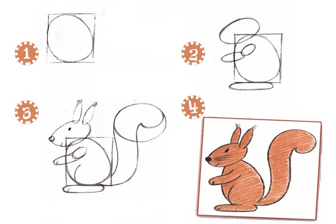 ![Как нарисовать белку карандашом поэтапно для детей]()