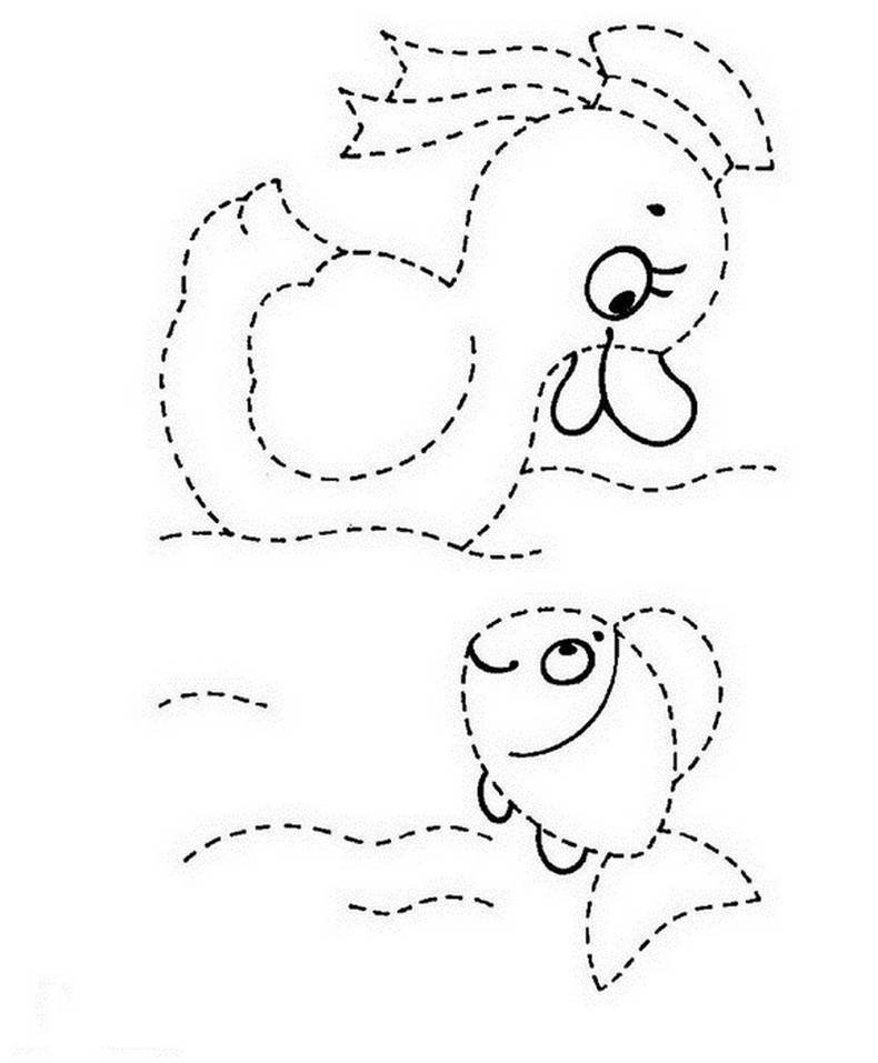 ![Обводить рыбку по точкам для детей]()
