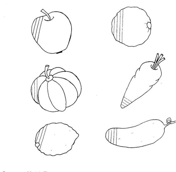 ![Эскизы фруктов и овощей]()