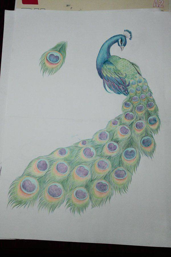 ![Павлин рисунок карандашом]()