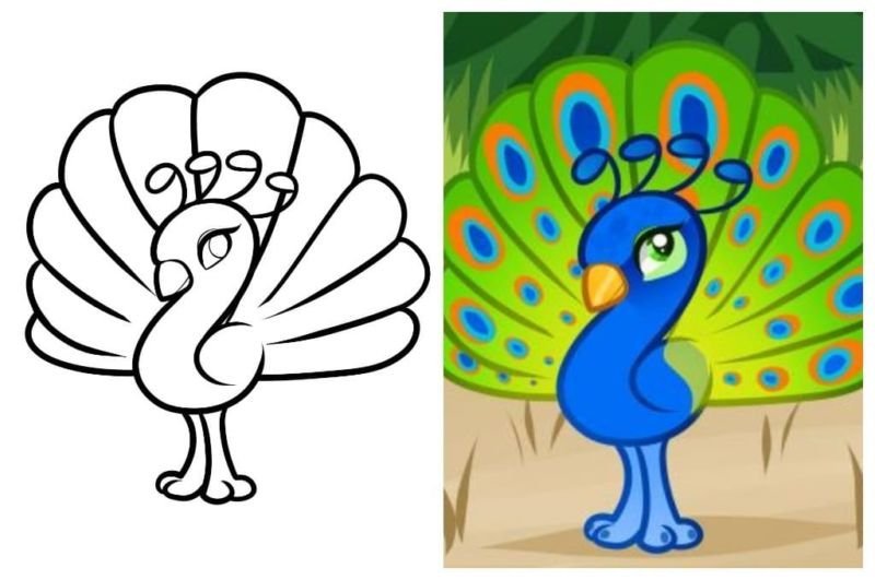 Мультяшный Павлин раскраска