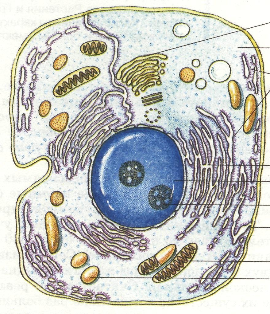 ![Строение эукариотической клетки без подписей]()