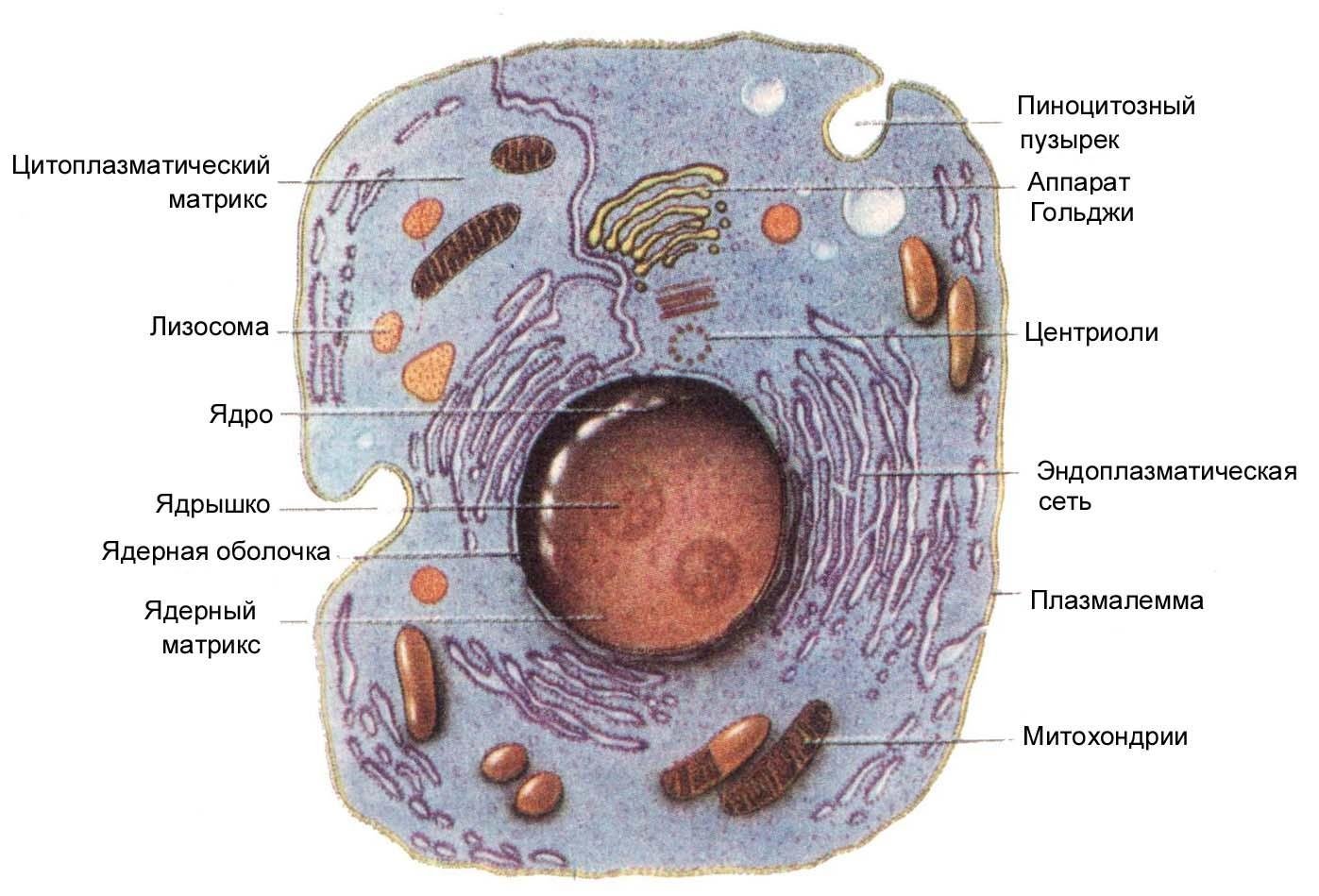 ![Схема эукариотической клетки животного]()