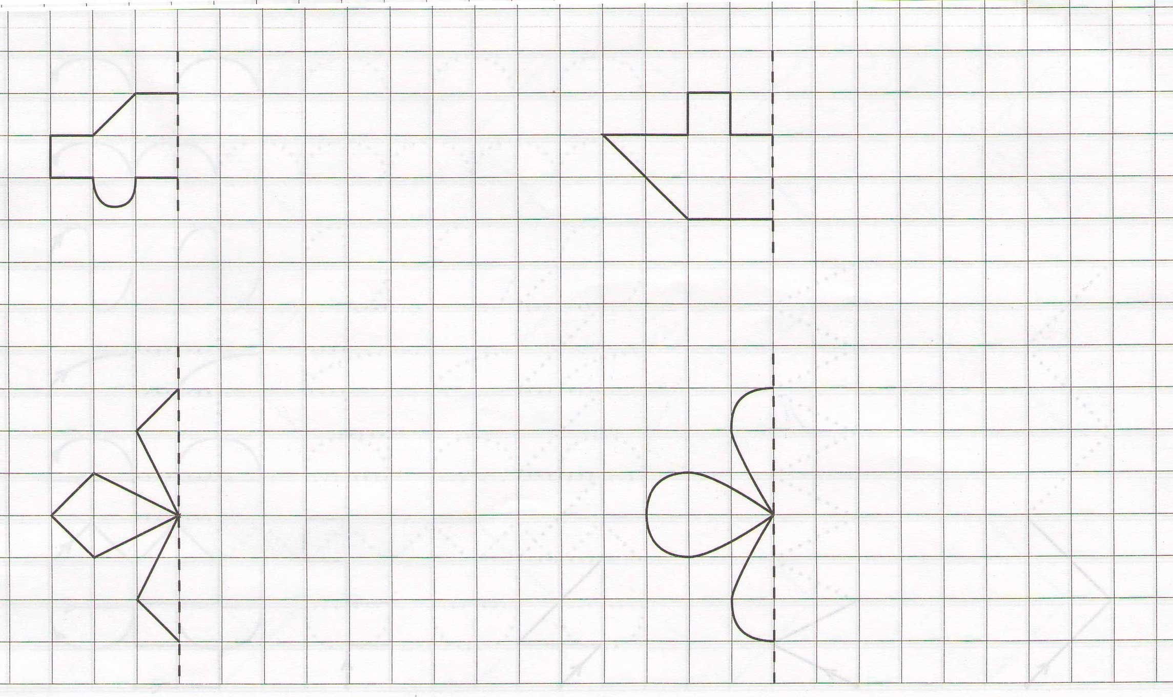 ![Дорисовать вторую половину рисунка по клеточкам]()