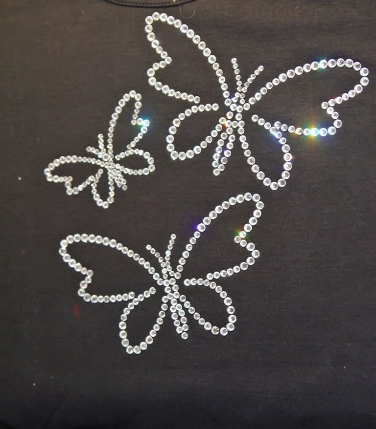 ![Бабочка из страз на одежде]()