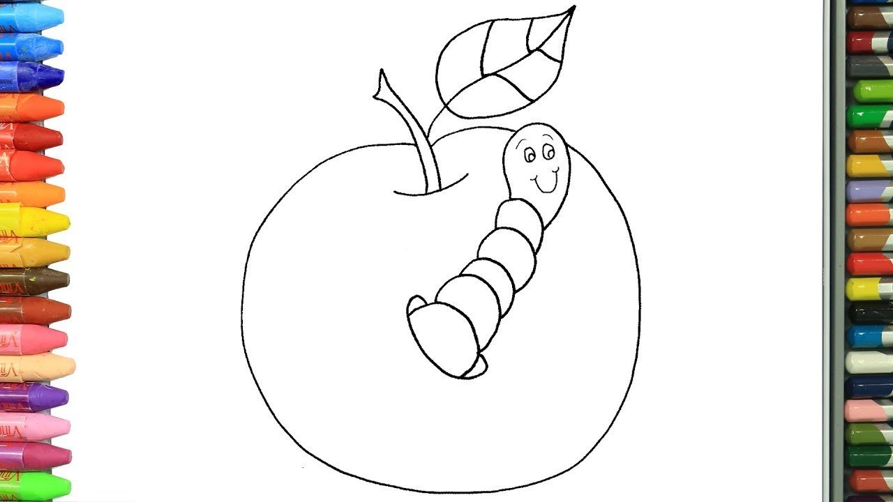 Рисование яблоко и червячок