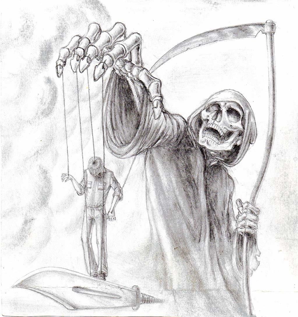 ![Смерть с косой рисунок карандашом]()