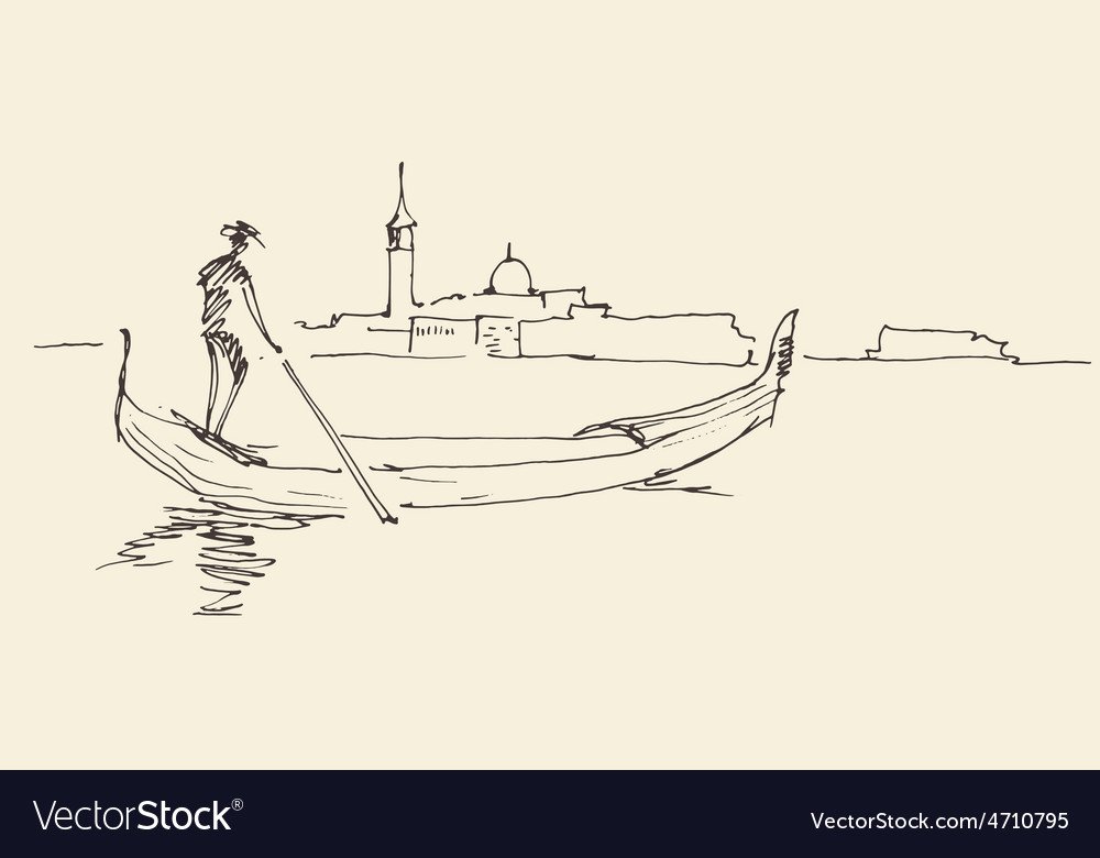 ![Гондола и гондольер в Венеции рисунок]()