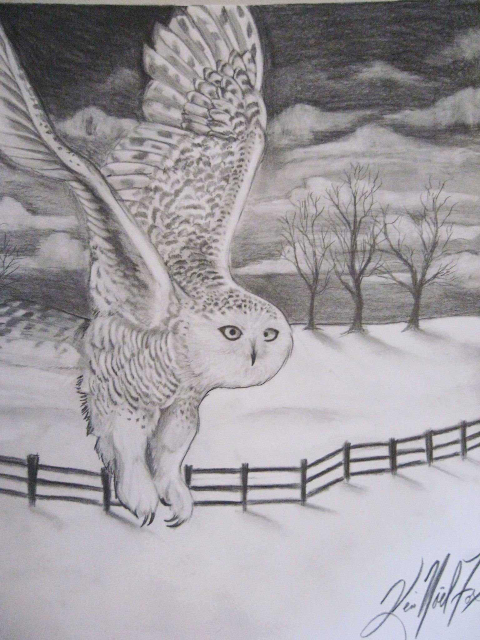 ![Белая Сова рисунок карандашом]()