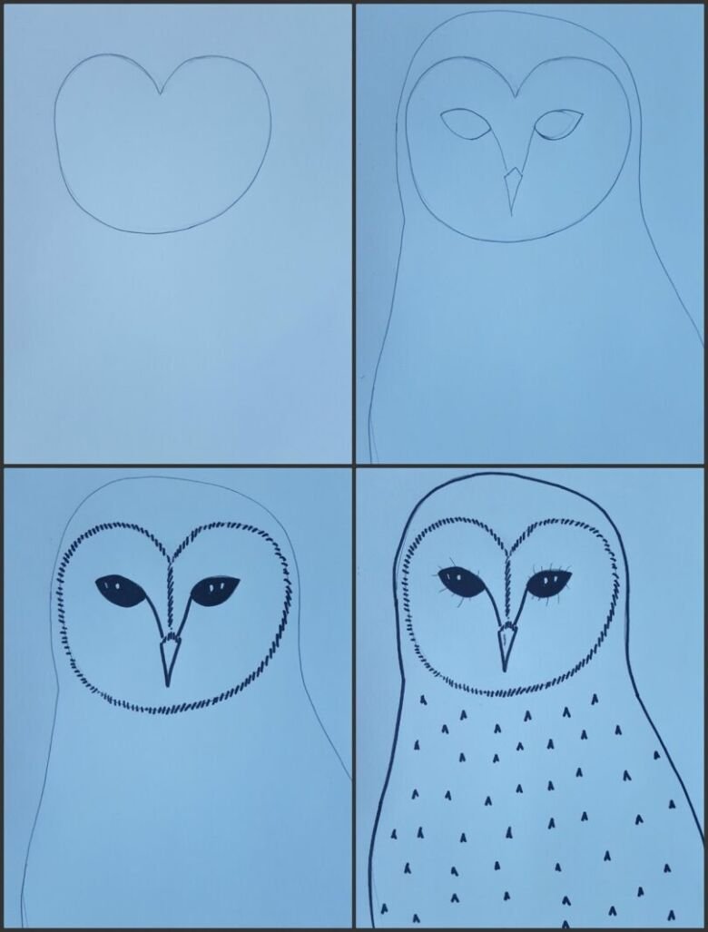 Сова рисунок пошагово