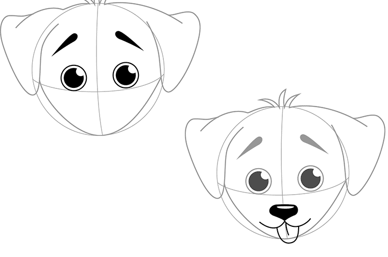 ![Поэтапное рисование мордочки собаки]()