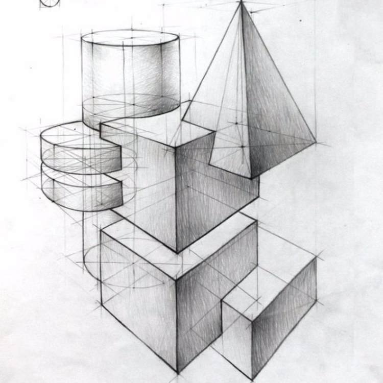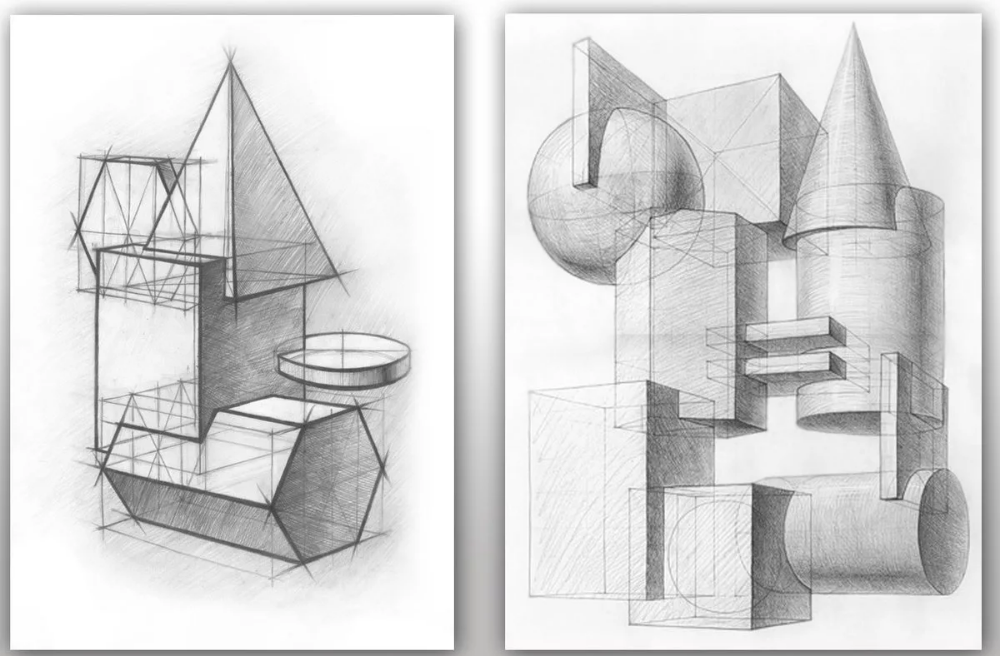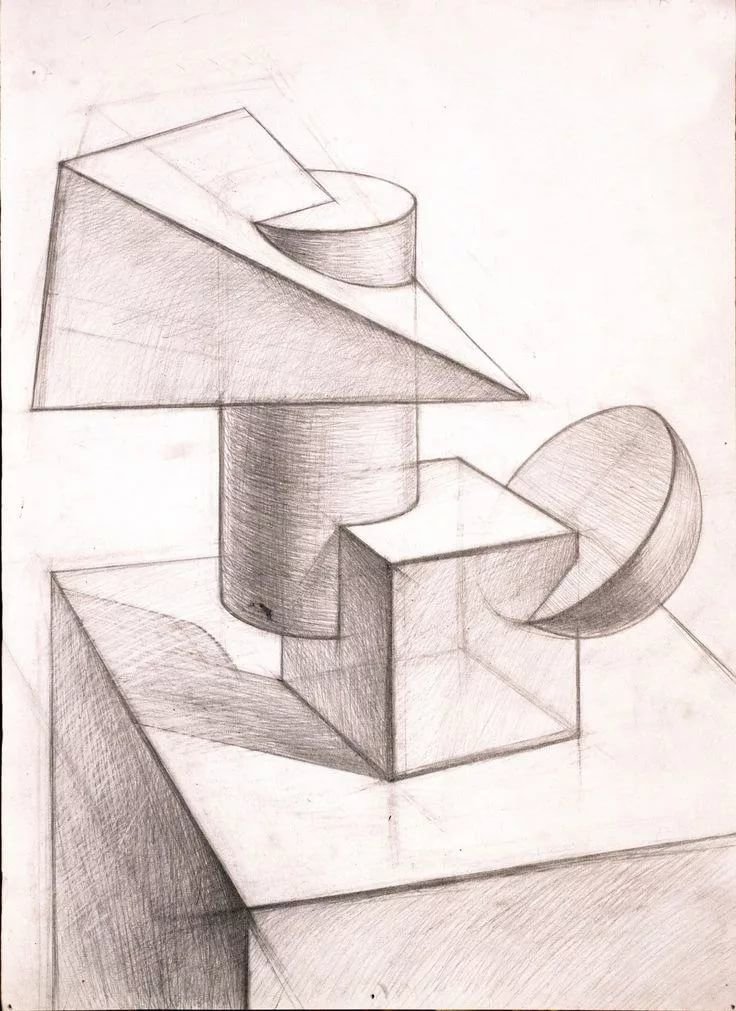 ![Натюрморт из гипсовых геометрических тел Академический рисунок]()