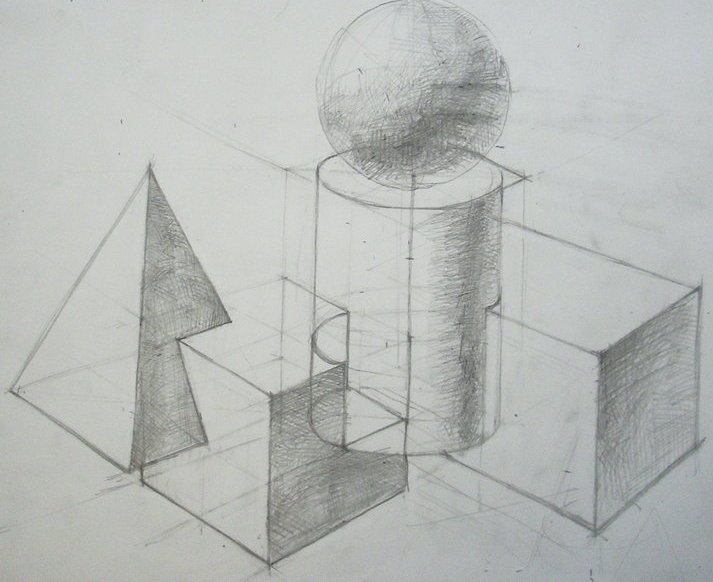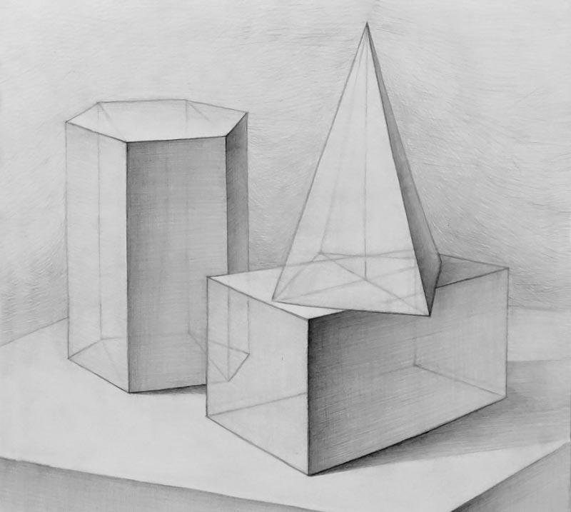 Натюрморт из гипсовых геометрических тел Академический рисунок