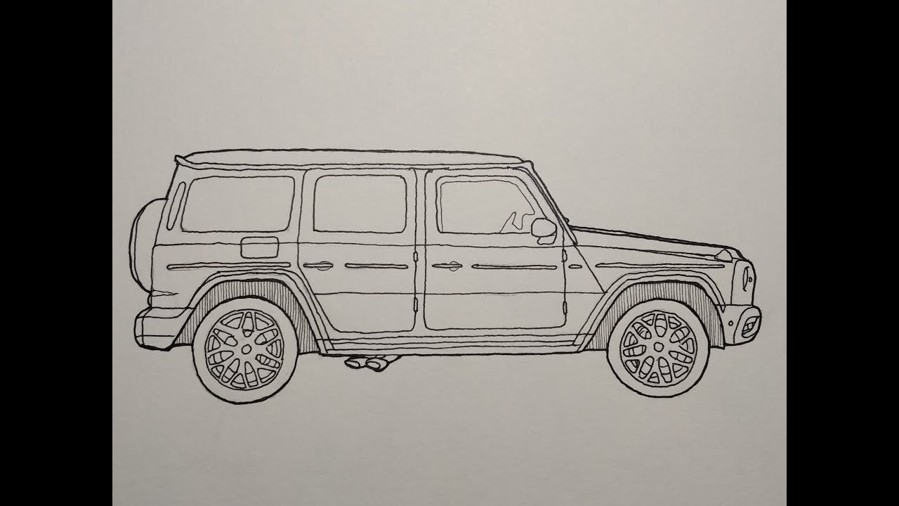 ![Мерседес Гелендваген нарисованный для начинающих вид сбоку]()