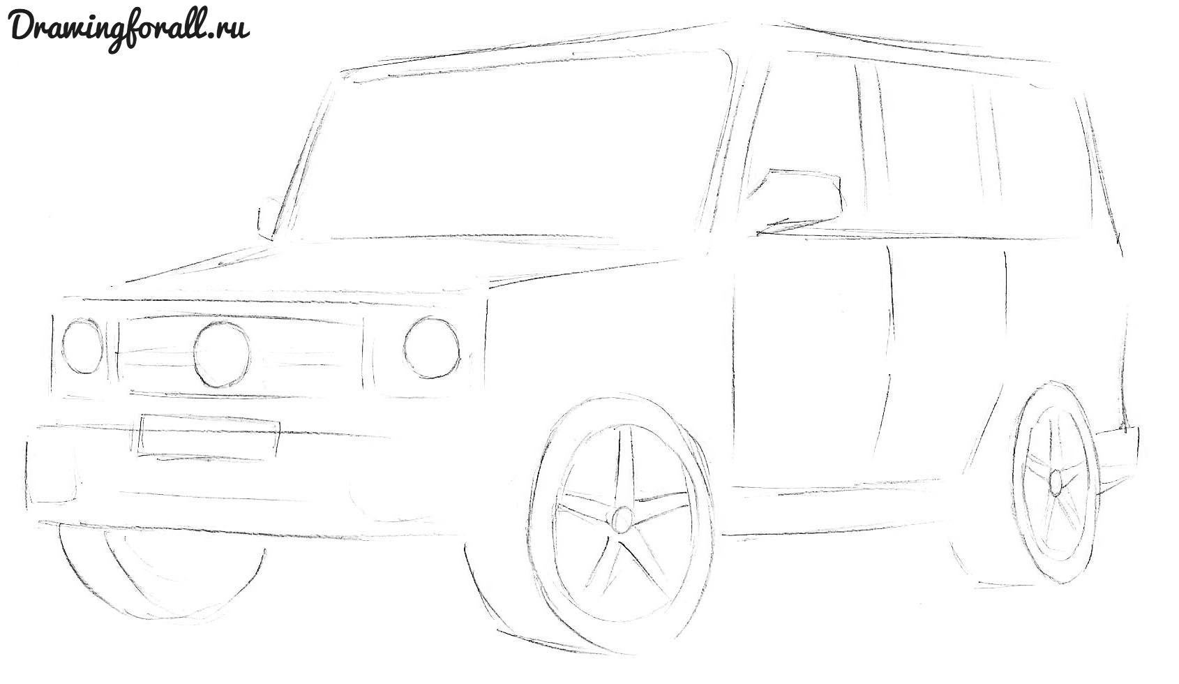 ![Гелендваген рисунок карандашом]()