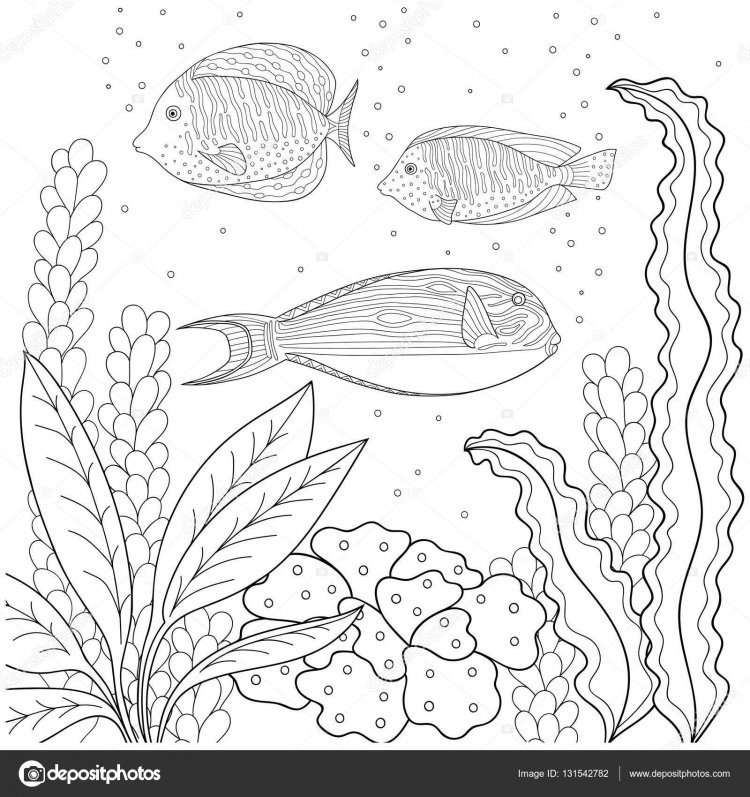 Рыбка с водорослями раскраска