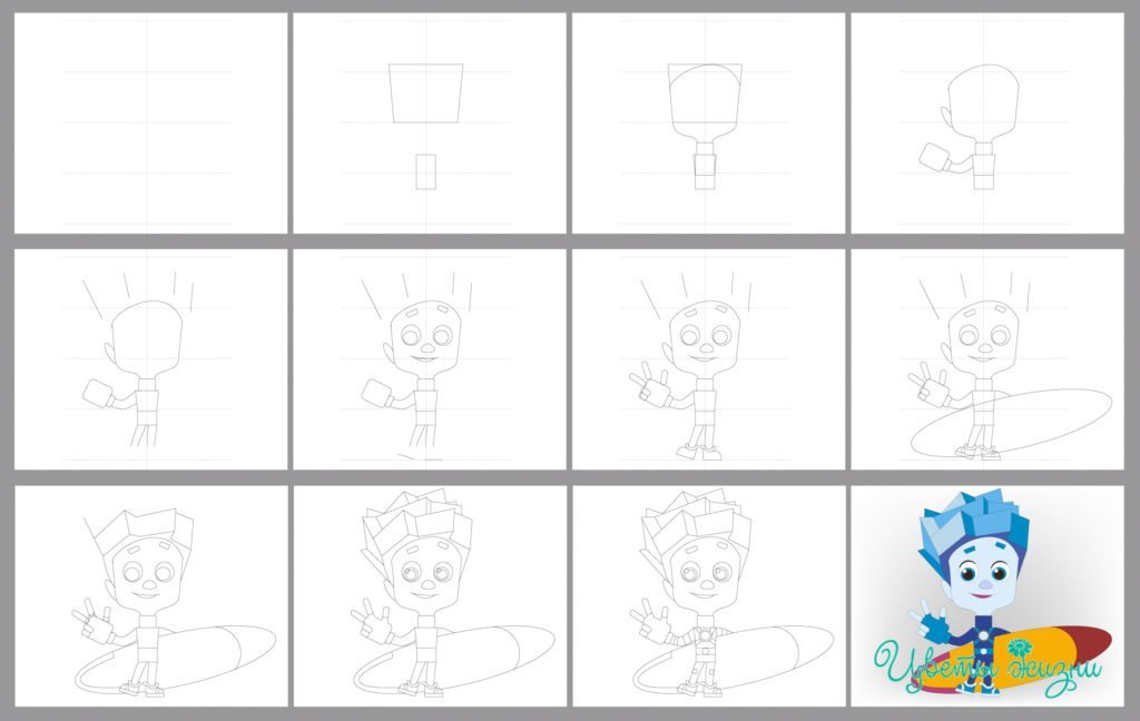 ![Нарисовать Фиксиков карандашом поэтапно]()