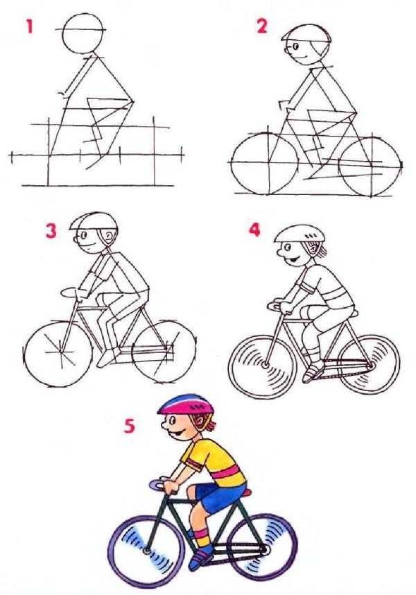 Велосипедист рисунок карандашом поэтапно для начинающих